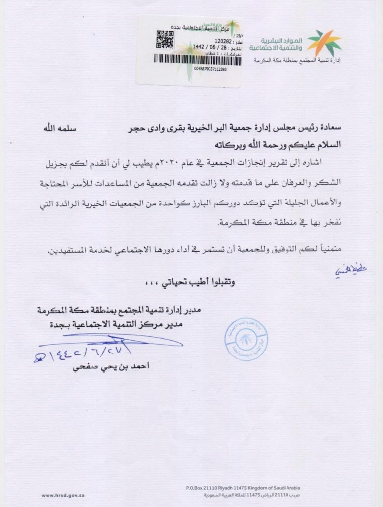 تتقدم #جمعية_حجر_الخيرية بالشكر والامتنان لزملائنا في مؤسسة وقف الملوان الوقفية.