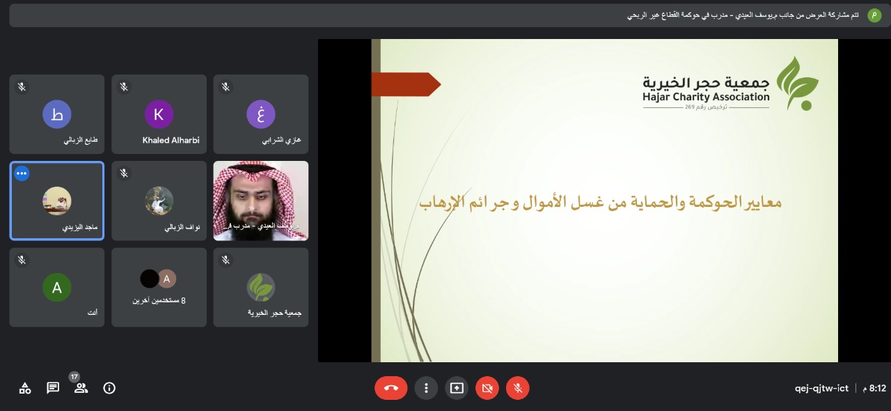بمشاركة مجلس إدارة #جمعية_حجر_الخيرية ومنسوبيها أختتمت دورة معايير الحوكمة والاشتباه في غسيل الأموال ، والتي تأتي ضمن سياسات الارتقاء بالجمعية من خلال التدريب والتأهيل.